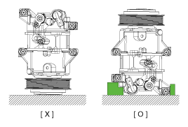 Убедитесь, что крепежный болт компрессора (A) имеет правильную длину.