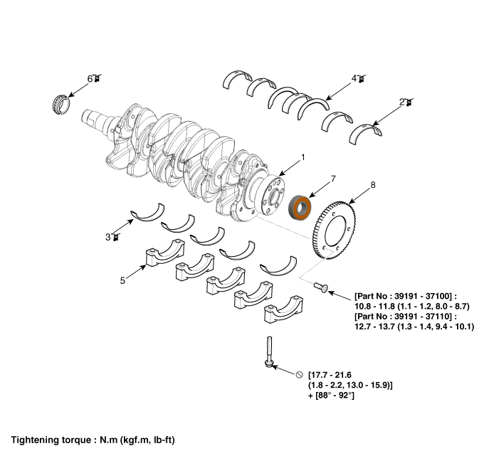 2. Верхний подшипник коленчатого вала 3. Нижний подшипник коленчатого вала 4. Упорный подшипник |