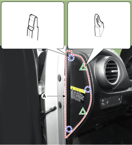 С помощью отвертки или съемника снимите боковую крышку аварийной подушки (А).