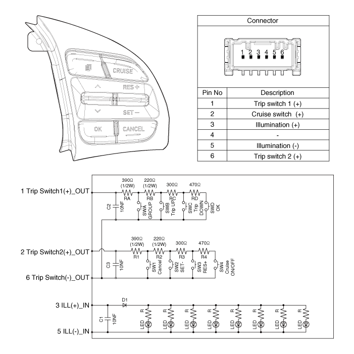 Переключатель круиз-контроля Компоненты и их расположение