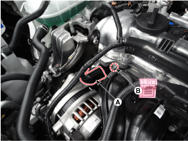 Отсоедините разъем клапана управления маслом CVVT (А).