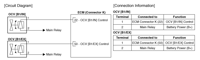 Технические характеристики масляного регулирующего клапана CVVT (OCV)