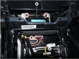 Снимите преобразователь постоянного/постоянного тока (B) после удаления винтов и гаек.