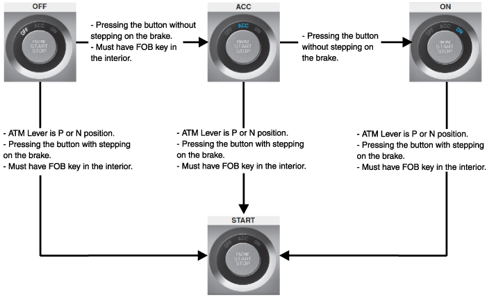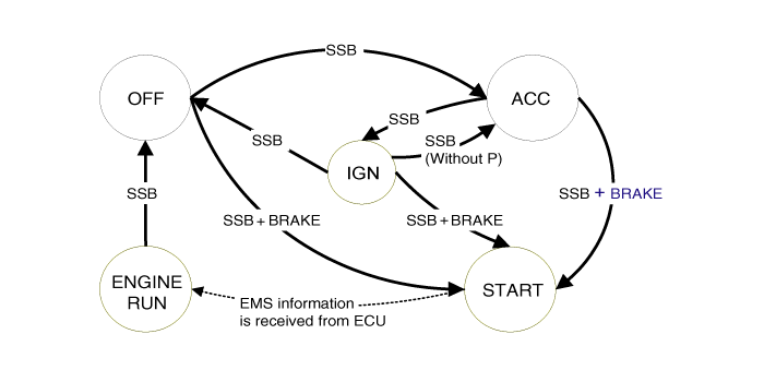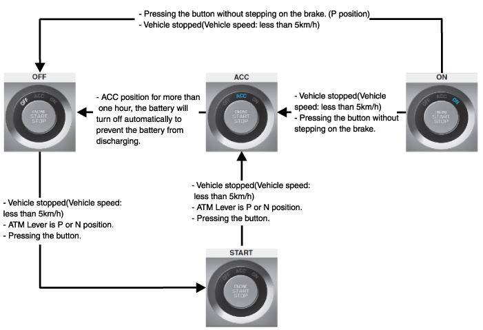 Для активации режимов питания «Выкл.», «Аксессуар», «Зажигание»