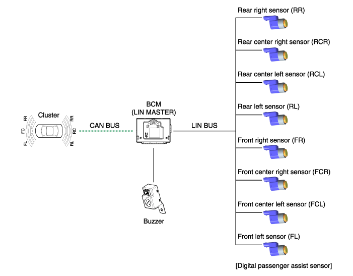 информации датчика RL/RR, BCM обрабатывает информацию каждого датчика