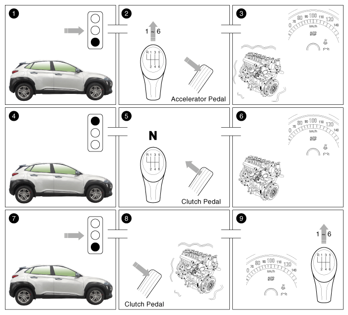 Водитель включает нейтраль и отпускает педаль сцепления.