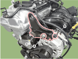Снимите кронштейн генератора (натяжитель ремня) (С).