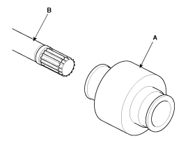 Осторожно отделите динамический демпфер (A) от вала (B).