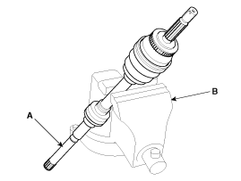Закрепите приводной вал (А) тисками (В), как показано на рисунке.