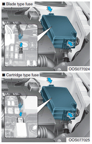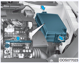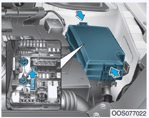 Проверив панель предохранителей в моторном отсеке, надежно установите крышку панели предохранителей. Вы можете услышать щелчок, если крышка надежно зафиксирована. Если он не будет надежно зафиксирован, может произойти сбой в электроснабжении из-за контакта с водой.