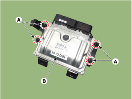 Снимите кронштейн ECM (B) после ослабления крепежных болтов (A).