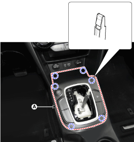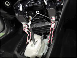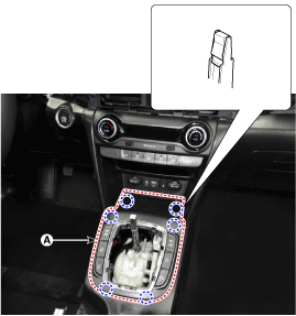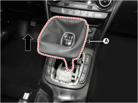 Снимите ручку переключения передач и пыльники (A), повернув ручку против часовой стрелки.