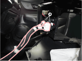 Отсоедините разъемы (А) от верхней крышки напольной консоли.