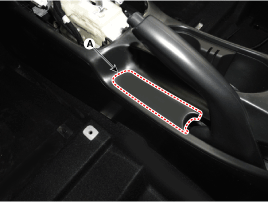 С помощью отвертки или съемника снимите кожух стояночного тормоза (А).