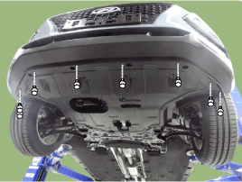 Ослабьте штифтовые фиксаторы и болты верхней части переднего бампера.