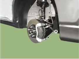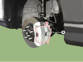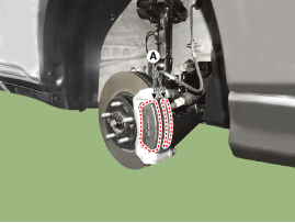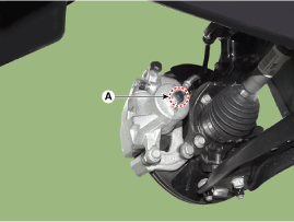 Ослабьте болт тормозного шланга (А) от суппорта, отделяя тормозной шланг.