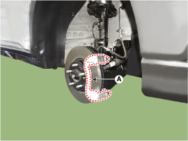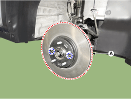 Снимите переднее колесо и шину (А) с передней ступицы.