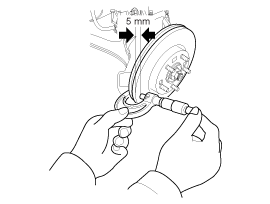 Если износ превышает допустимый, замените диски и колодки в сборе слева и справа.