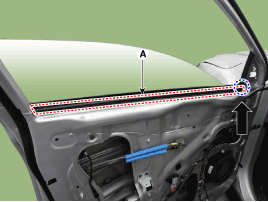 Снимите ремень передней двери внутри уплотнителя (А).