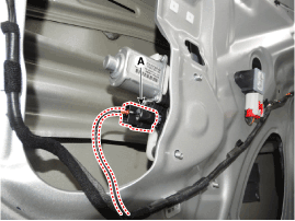 Отсоедините разъем электродвигателя стеклоподъемника передней двери (А).