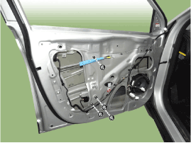 Ослабьте гайки крепления стеклоподъемника передней двери.