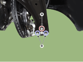Снимите переднее колесо и шину (А) с передней ступицы.