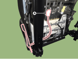 Отсоедините проводку разъема замка переднего ремня безопасности (А).