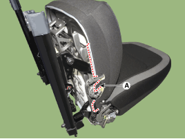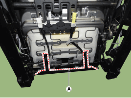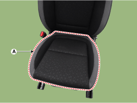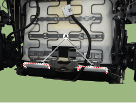 Снимите протектор (А) с каркаса подушки переднего сиденья.