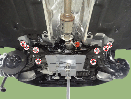 Снимите подрамник, ослабив болты и гайки крепления.