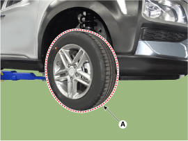 Снимите переднее колесо и шину (А) с передней ступицы.