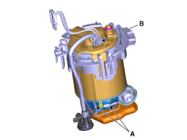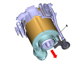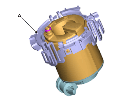 Снимите кронштейн топливного фильтра (А) после освобождения фиксирующих крючков.
