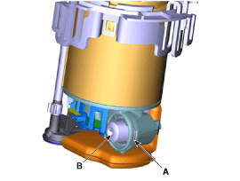Снимите двигатель топливного насоса (В) в направлении, указанном стрелкой.