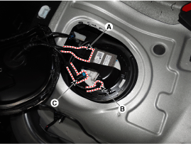 Отсоедините быстроразъемный соединитель трубки подачи топлива (С).