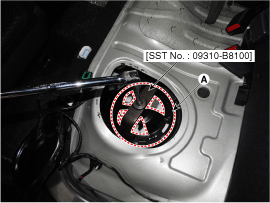 Снимите стопорное кольцо (A) с помощью специального инструмента для обслуживания [№: