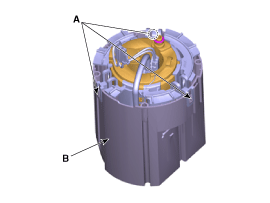 Снимите двигатель топливного насоса (В) в направлении, указанном стрелкой.