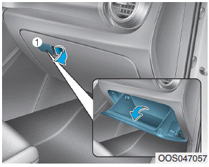 Чтобы открыть перчаточный ящик, потяните за ручку (1), и перчаточный ящик автоматически откроется. открыть. Закрывайте перчаточный ящик после использования.