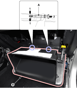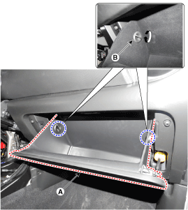 Снимите стопорные штифты (А), затем снимите перчаточный ящик (В).