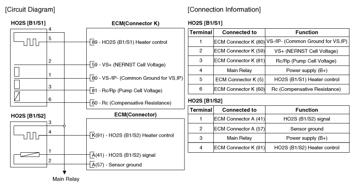 Технические характеристики датчика кислорода с подогревом (HO2S)