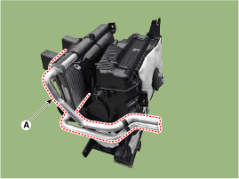 Снимите крышку радиатора отопителя (А) после ослабления крепежных винтов.