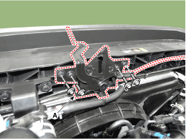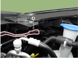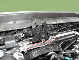 Ослабьте болты крепления и снимите узел нижней защелки капота (А).