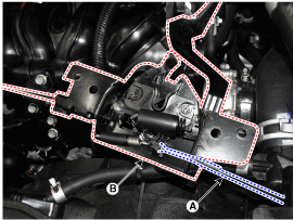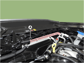 Отсоедините хомут шланга охлаждающей жидкости (А).