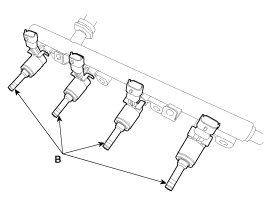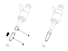 Снимите разъем (А), а затем отделите инжектор (В) от