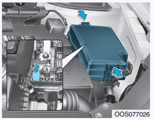 7. Вставьте новый предохранитель того же номинала и убедитесь, что он плотно входит в гнездо. клипы. Если он сидит неплотно, обратитесь к авторизованному дилеру HYUNDAI. В чрезвычайной ситуации, если у вас нет запасного предохранителя, используйте предохранитель того же номинала из цепи, в которой вы может не понадобиться для эксплуатации автомобиля, например, предохранитель прикуривателя.
