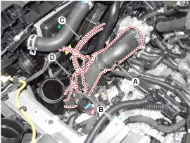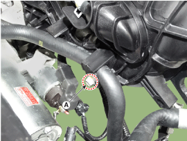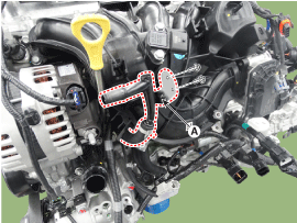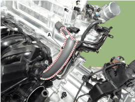 Отсоедините шланг принудительной вентиляции картера (PCV) (А).