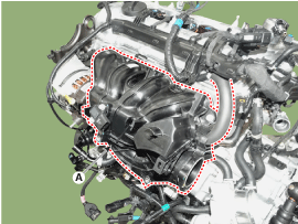 Снимите впускной коллектор (А) с прокладкой.