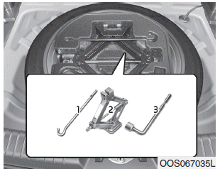 Домкрат, ручка домкрата и ключ для колесных гаек хранятся в багажном отделении. под крышкой багажника.