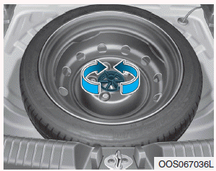 Храните запасное колесо в том же отсеке, повернув барашковый фиксатор вниз. болт по часовой стрелке.