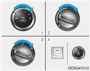 4. Будет выбран внешний (свежий) воздух и кондиционер (при наличии). автоматически.
