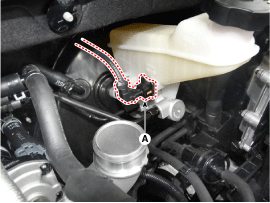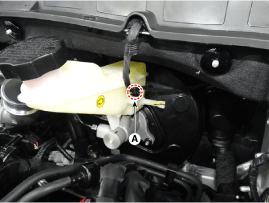 Отсоедините разъем датчика уровня тормозной жидкости (А).
