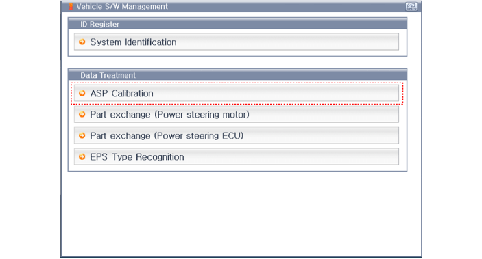 После выбора «модели автомобиля» и «системы» выберите «Калибровка ASP».